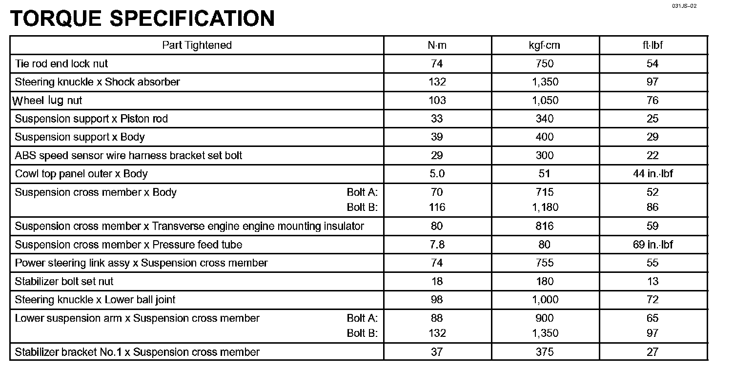 Front Suspension - Torque Specification: