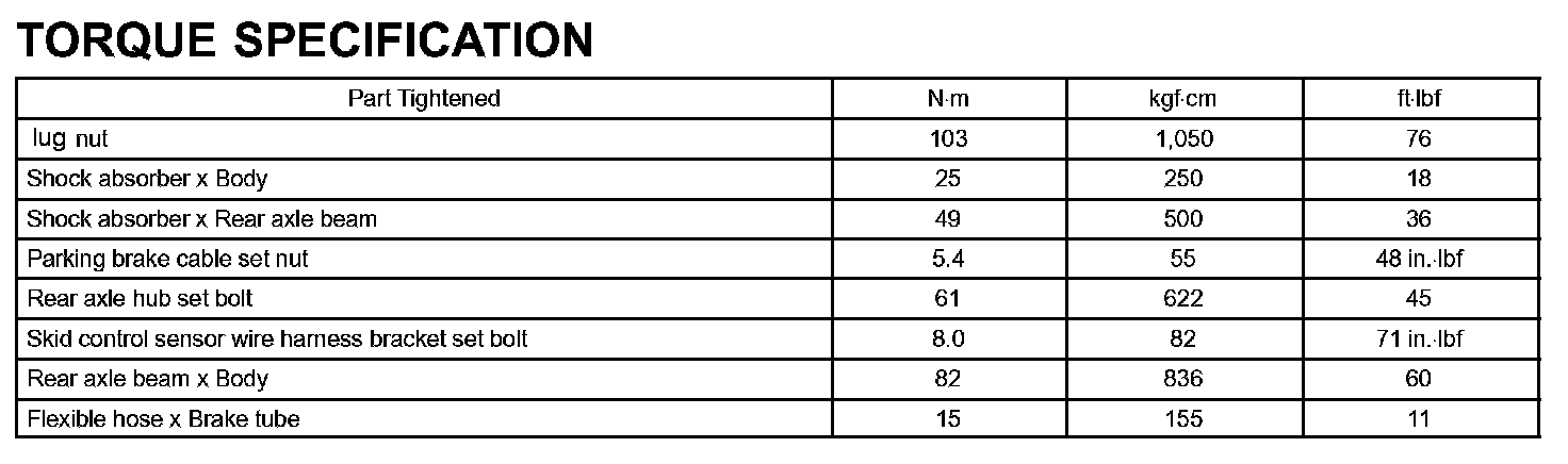 Rear Suspension - Torque Specification: