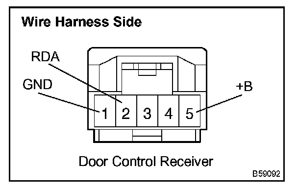 b. Check the voltage and resistance between the terminals of the wire harness side connector of the receiver and body ground.