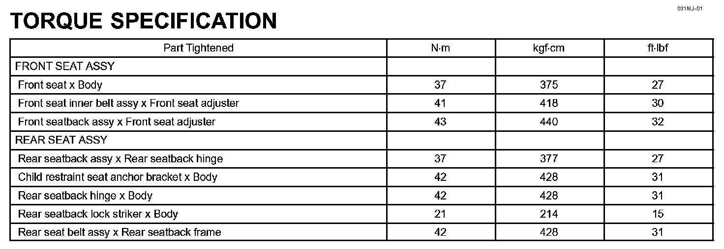 Seat - Torque Specification: