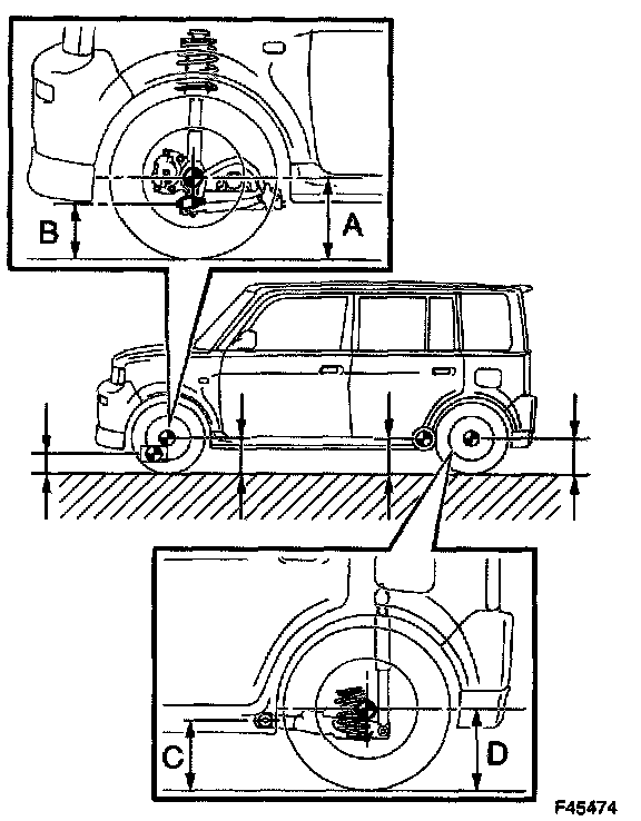 HINT: Bounce the vehicle at the corners up and down to stabilize the suspension and inspect the vehicle height.