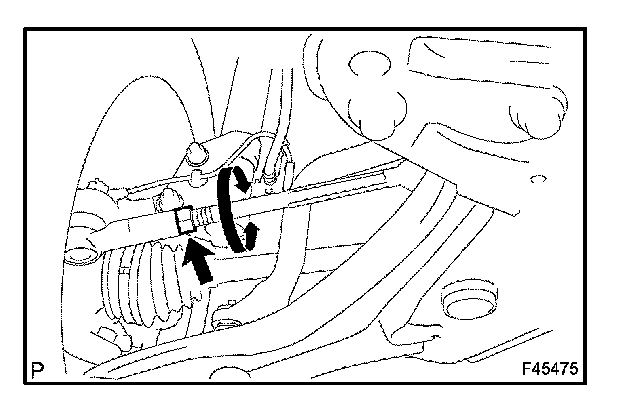 NOTICE: Temporarily tighten the lock nut while holding the hexagonal part of the steering rack end so that the lock nut and the steering rack end do not turn together. Hold the width across flat of the tie rod end and tighten the lock nut.
