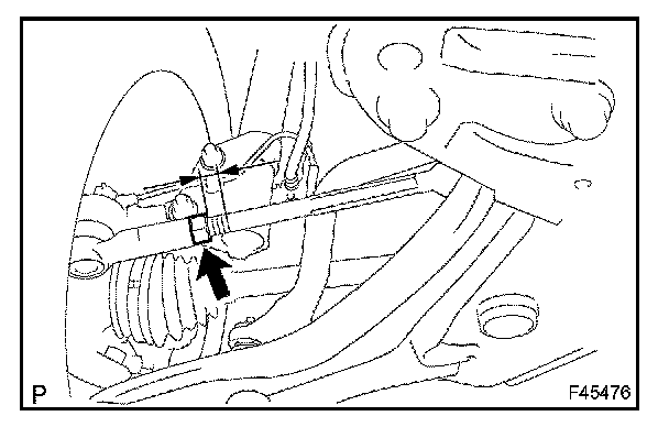 - If the toe-in is not within the specified value, adjust it at the rack ends.