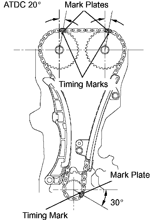 a. After setting the crankshaft at ATDC 40 to 140°, set cams of intake and exhaust timing sprockets at ATDC 20° and then reset the crankshaft at ATDC 20°.