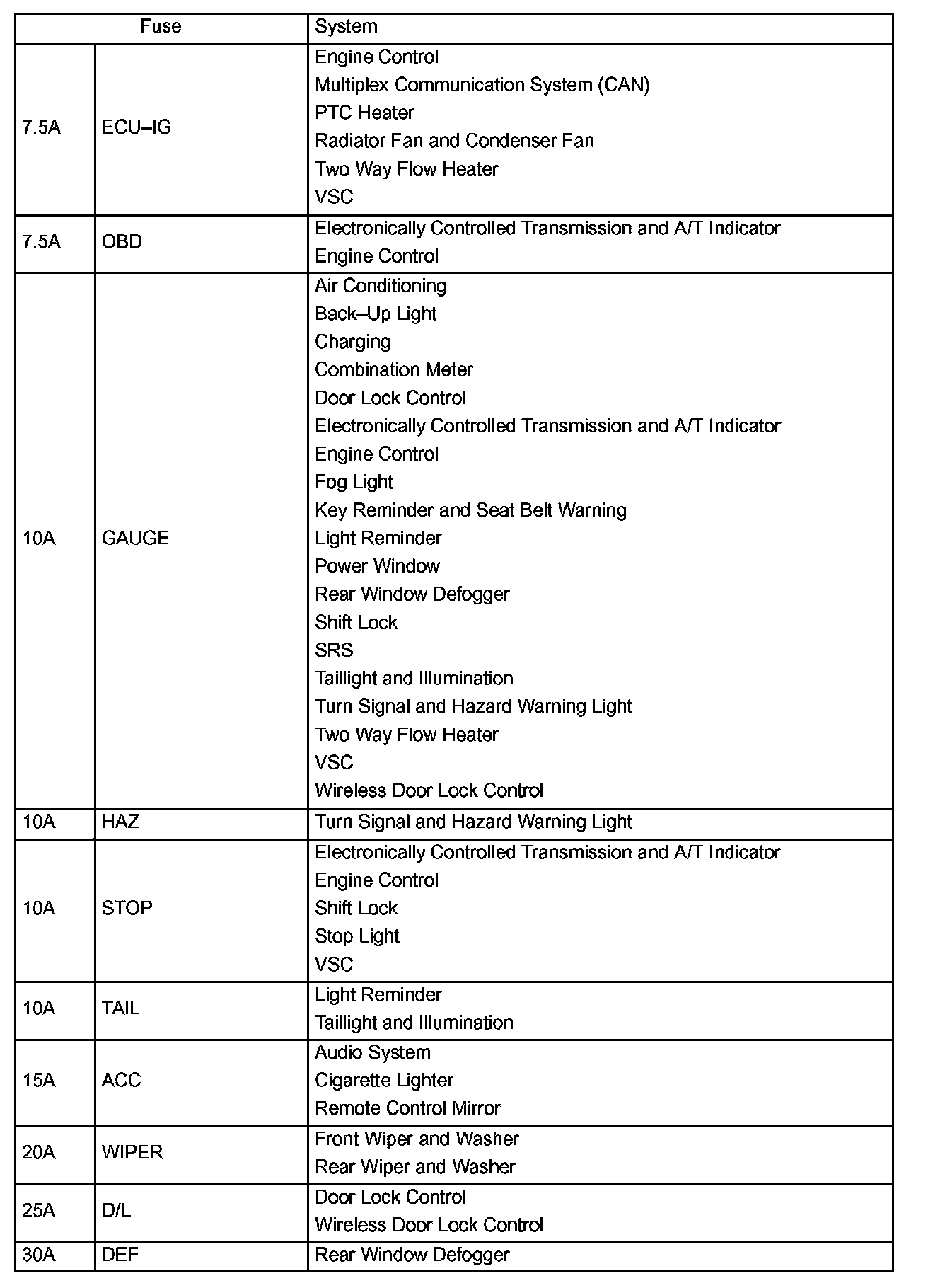 Interior Panel Fuse Details