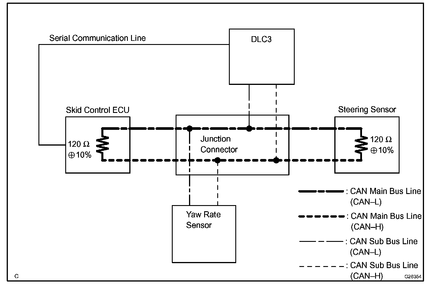 1. Sub bus line is a wire harness which diverges from the main bus line, which is the main bus of the CAN bus, to an ECU or sensor.