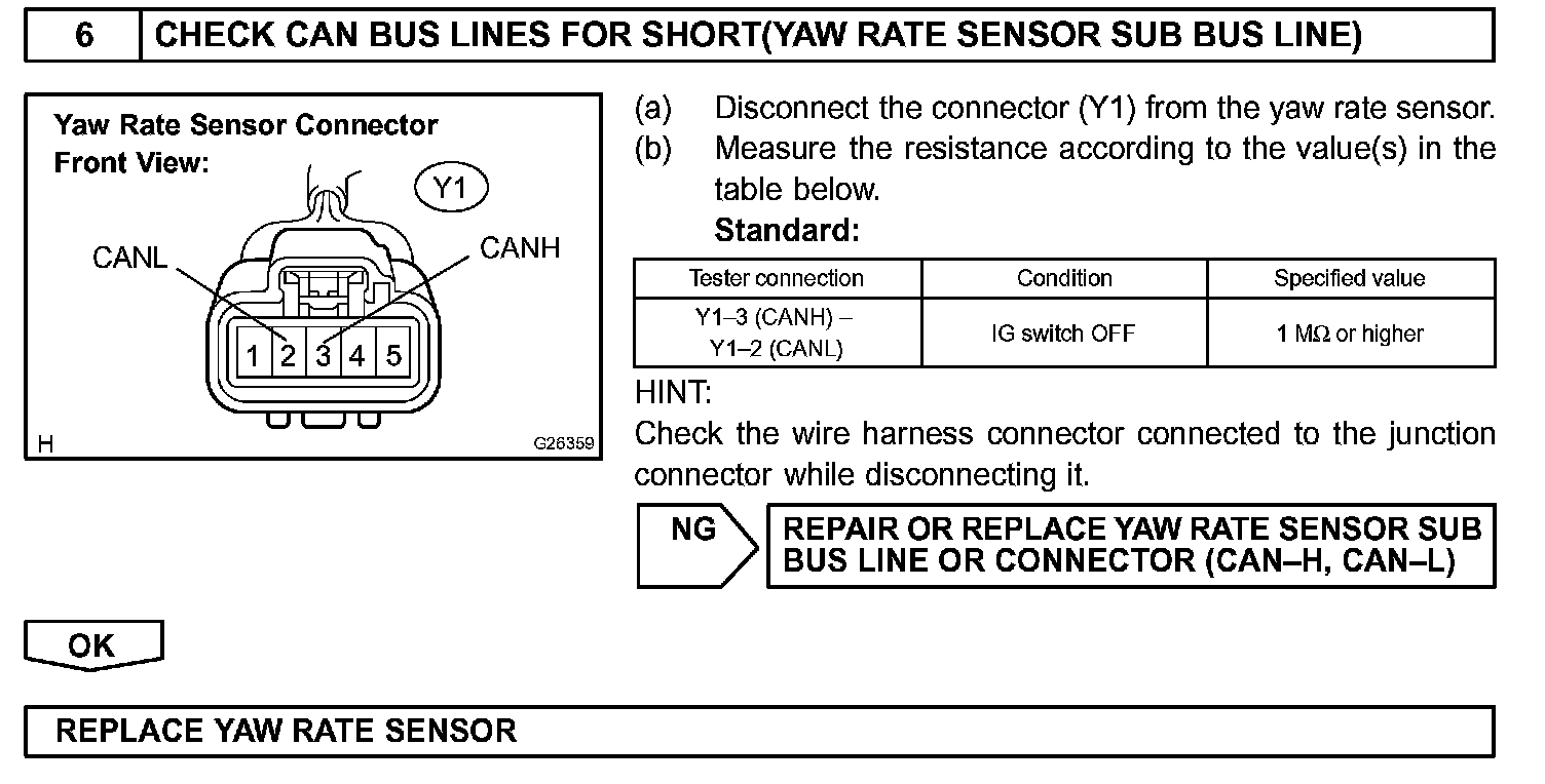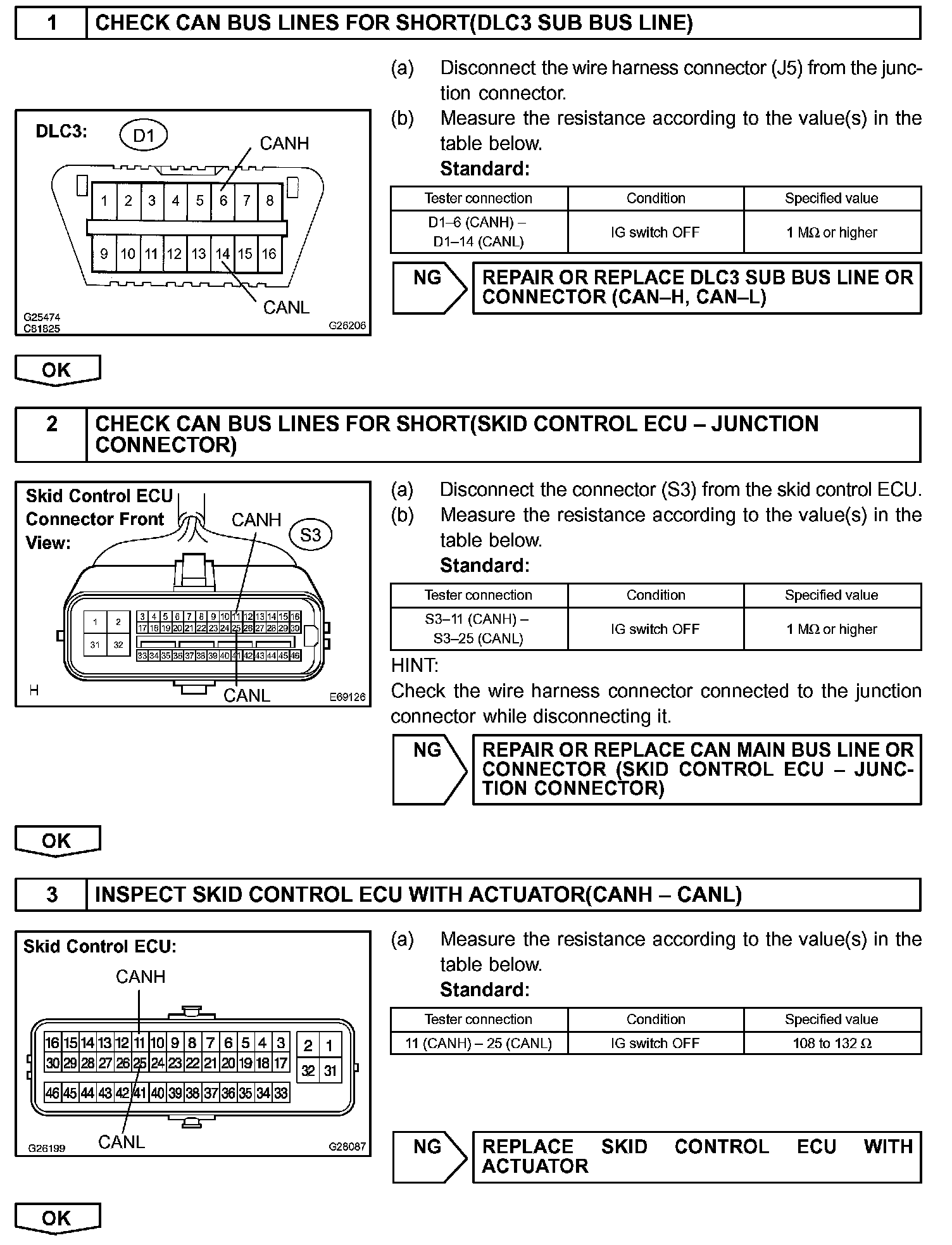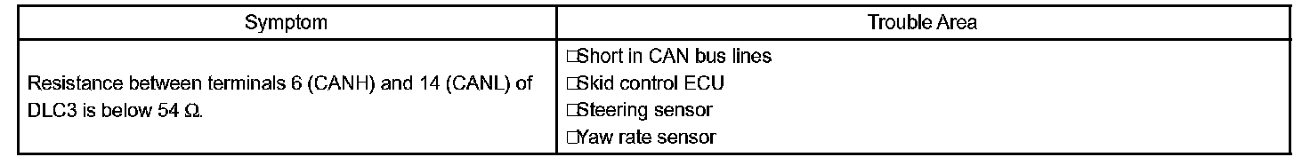 CHECK CAN BUS LINES FOR SHORT CIRCUIT CIRCUIT DESCRIPTION The CAN bus lines are considered to be shorted when the resistance between terminals 6 (CANH) and 14 (CANL) of the