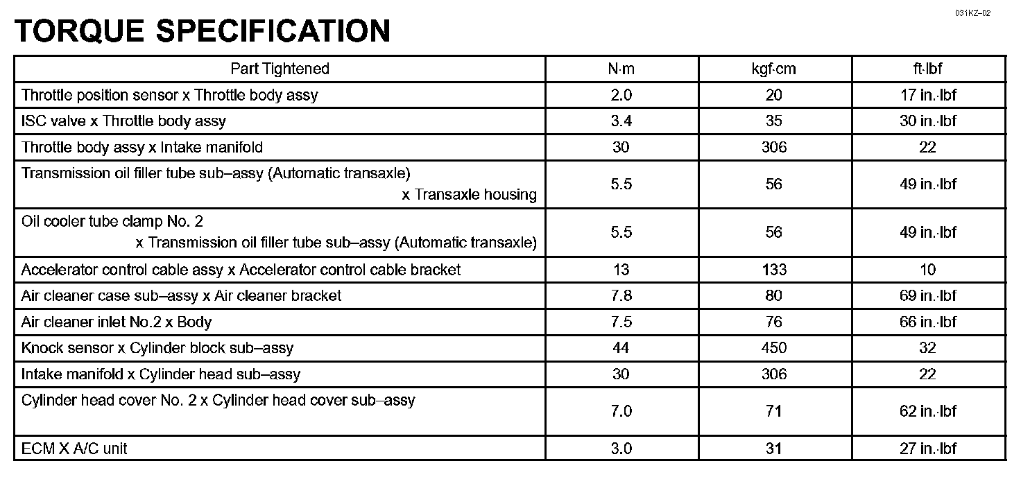 Engine Control System - Torque Specification: