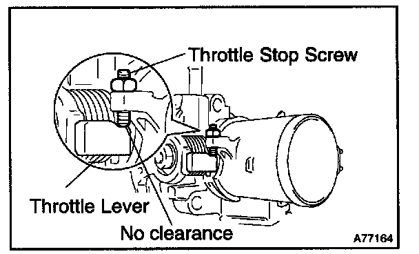 4. Check that there is no clearance between the throttle stop screw and throttle lever at the throttle valve closed position.