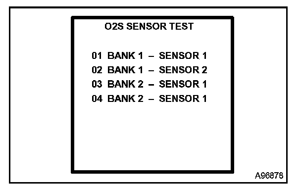 The O2S Test Result is part of the monitoring for Heated Oxygen (HO2) sensor malfunctions. The various states (Test Items) of the HO2 sensor are monitored by the ECM. The Test Item values (Test Values) can be read using a hand-held tester or OBD II scan tool.