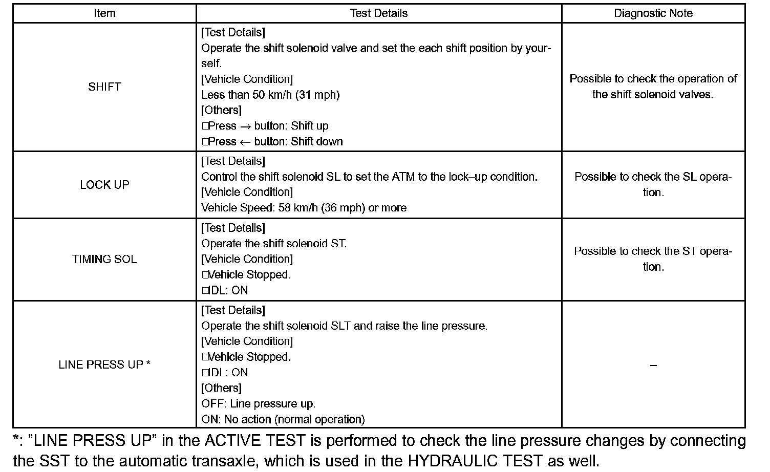HINT: The pressure values in ACTIVE TEST and HYDRAULIC TEST are different from each other.