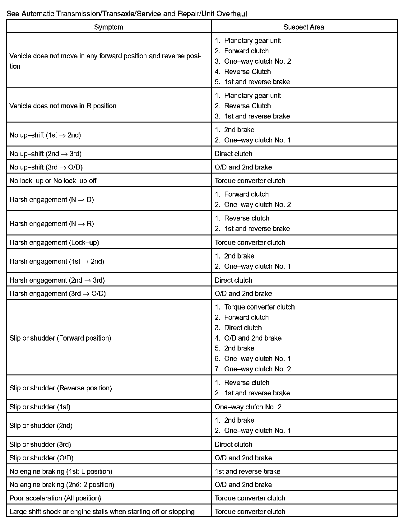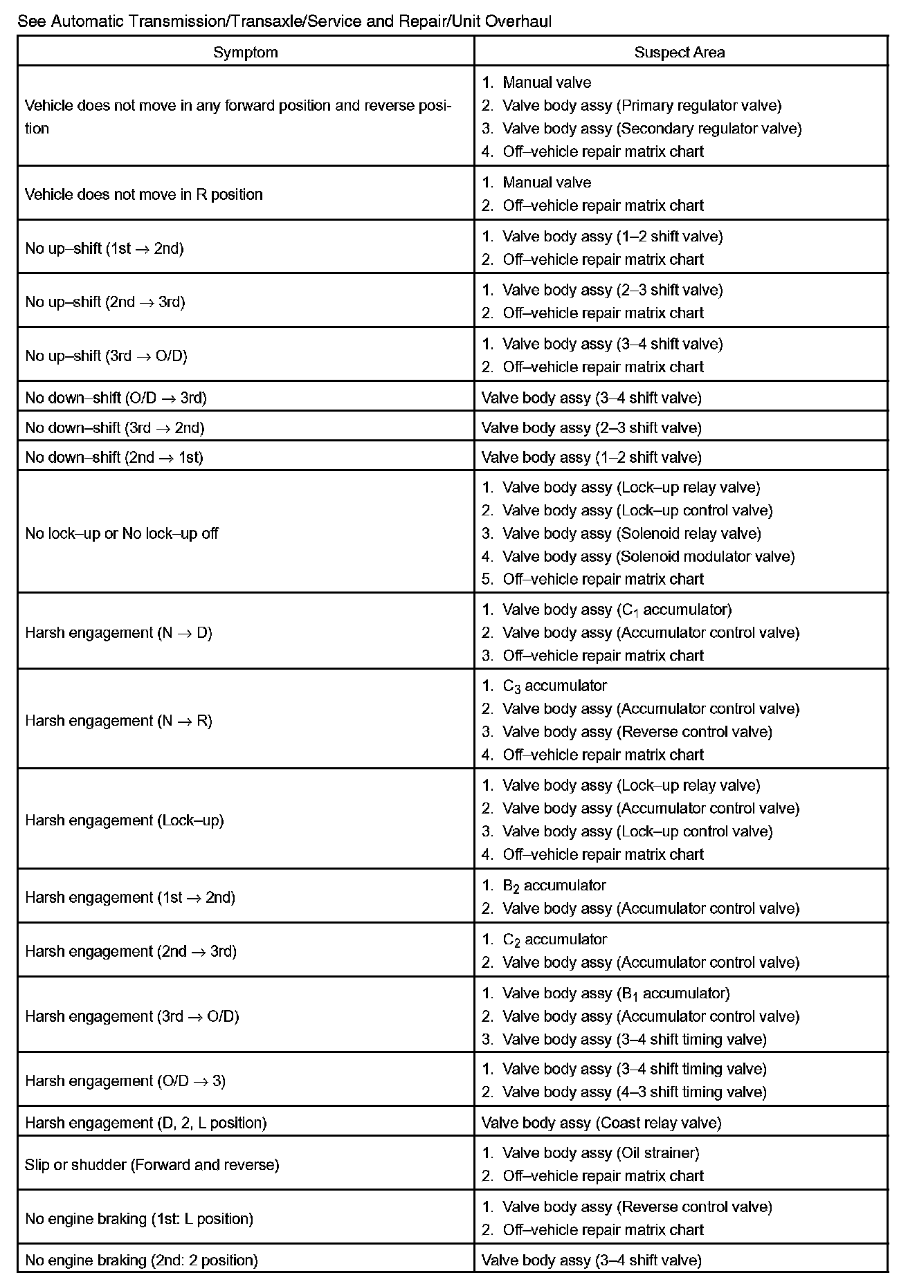CHART 2: ON VEHICLE REPAIR