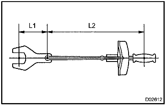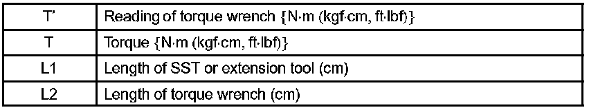 2. In this, only the specified torque is described. In case of using SST or extension tool, calculate the reading of the torque wrench by the following formula.
