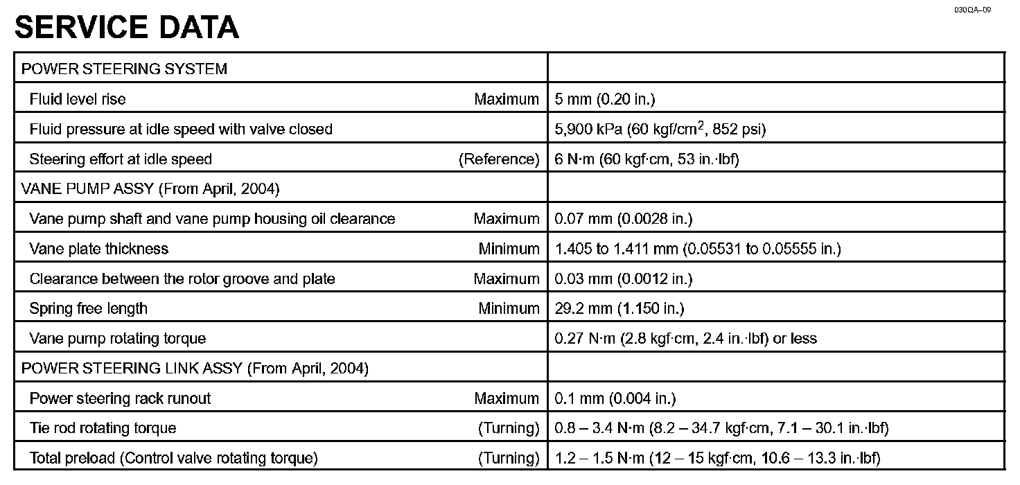 Power Steering - Service Data: