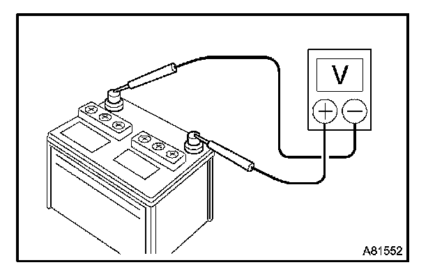 c. Measure the battery voltage between the negative (-) and positive (+) terminals of the battery.
