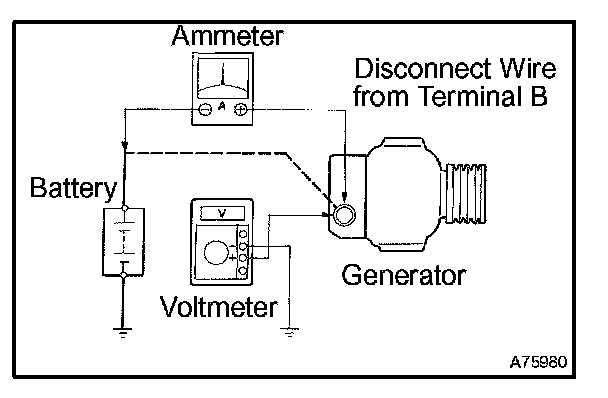 1. Disconnect the wire from terminal B of the generator and connect it to the negative (-) lead of the ammeter.
