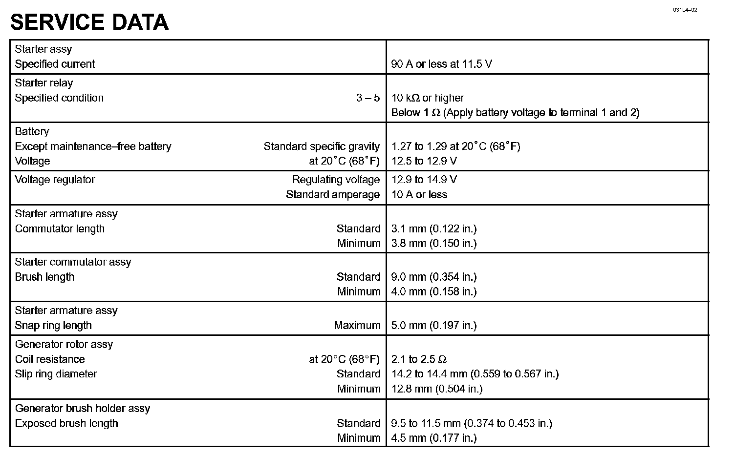 Starting & Charging - Service Data: