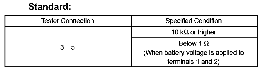 If the result is not as specified, replace the relay.