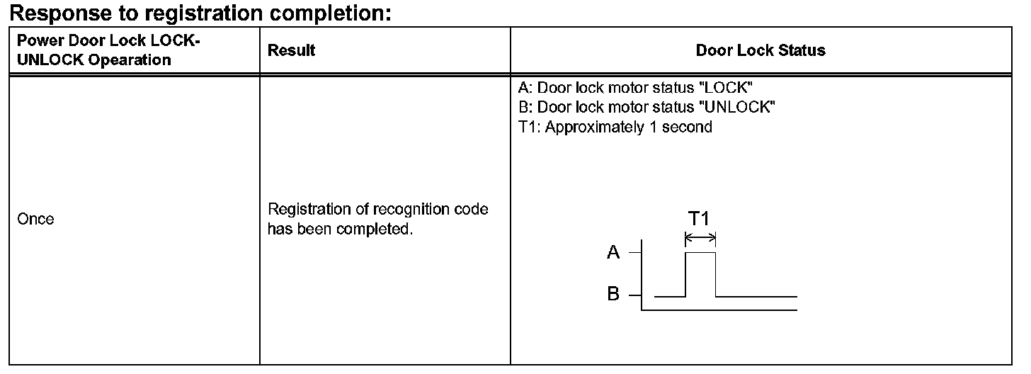HINT: If the number of the ON-LOCK operations of the ignition switch is 0, 4 or 6 or more, there will be no response (power door LOCK-UNLOCK operation) to show which mode has been selected.