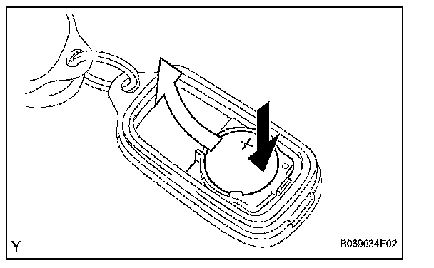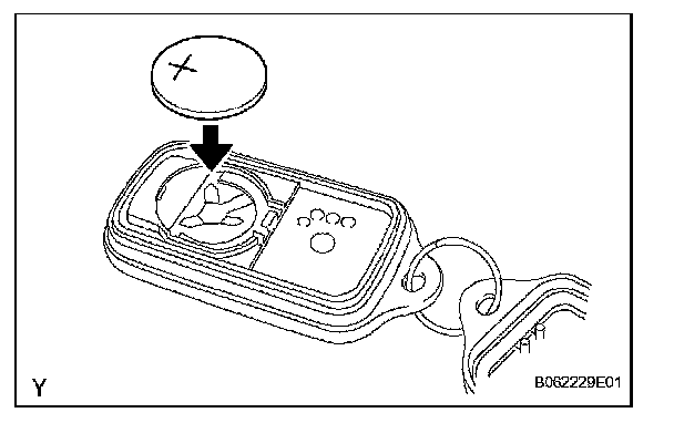 a. Install a new battery (lithium battery) with the positive (+) side up, as shown in the illustration.