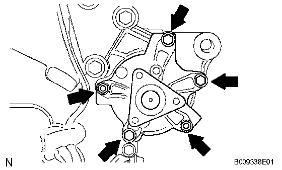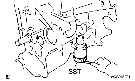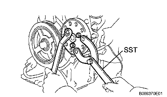 a) Using SST, hold the pump pulley and remove the 3 bolts and pump pulley.