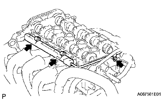 a) Remove the 3 bolts and fuel delivery pipe together with the 4 fuel injectors.