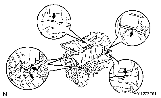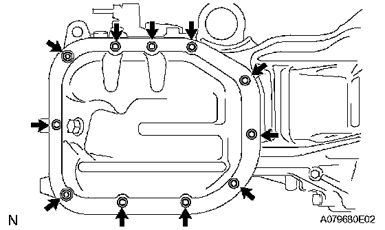 NOTICE: Be careful not to damage the oil pan and No. 2 oil pan.