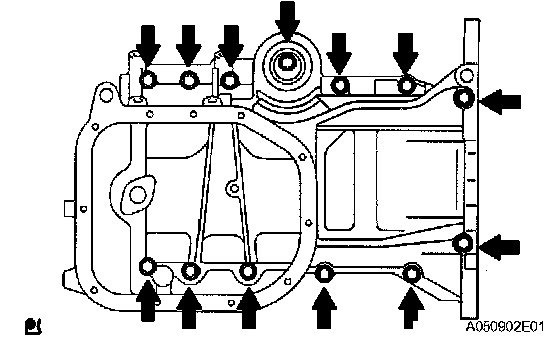 NOTICE: Be careful not to damage the contact surfaces of the oil pan and cylinder block.