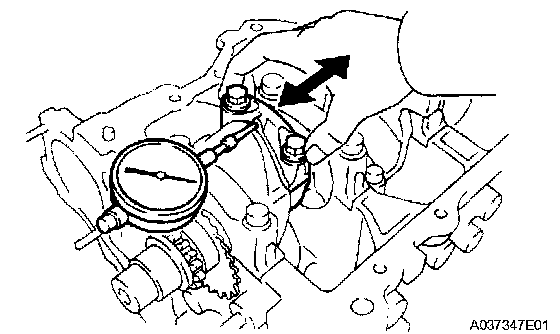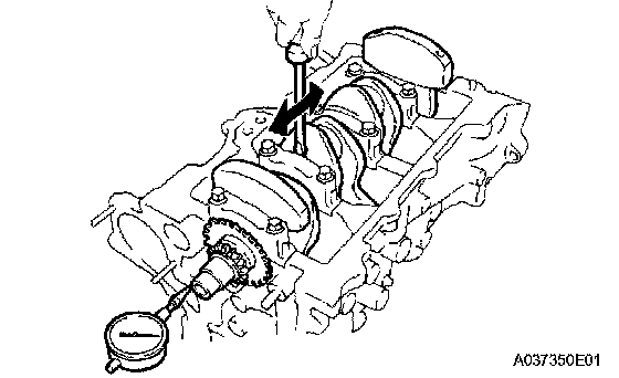 a) Using a dial indicator, measure the thrust clearance while prying the crankshaft back and forth with a screwdriver.