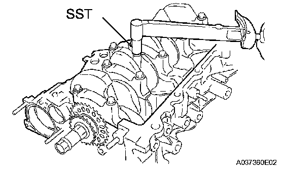 i) Using SST, tighten the bolts in several steps by the specified torque in the sequence shown in the illustration.
