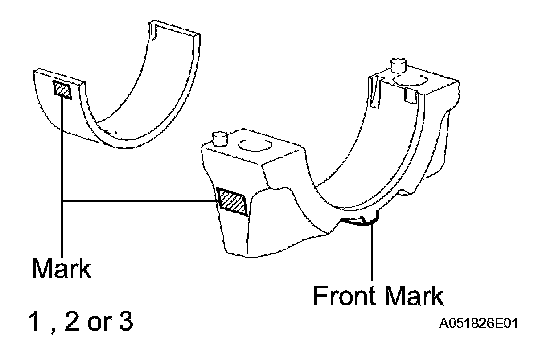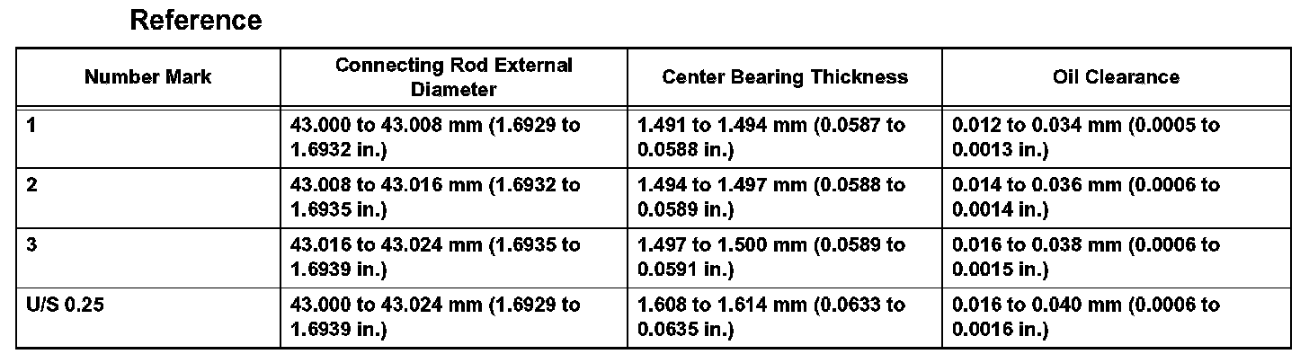 ^ To select the correct bearing size, calculate the bearing number by adding together the numbers imprinted on the cylinder block and crank journal.