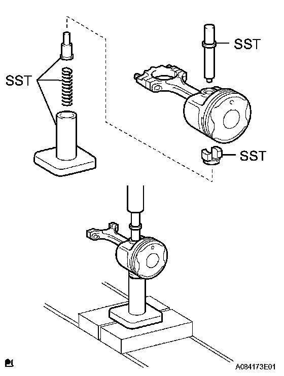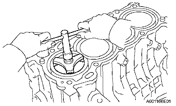 b) Push the piston, connecting rod assembly and upper bearing through the top of the cylinder block.