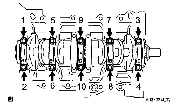 k) Retighten the bearing cap bolts by 90° in the same sequence.