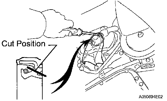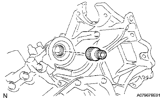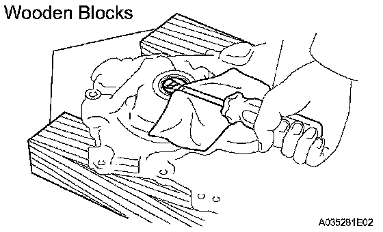 2) Using a screwdriver with the tip wrapped in tape, pry out the oil seal.