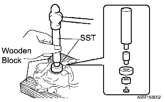 d) Using SST and a hammer, tap in the oil seal until its surface is flush with the rear oil seal retainer edge.