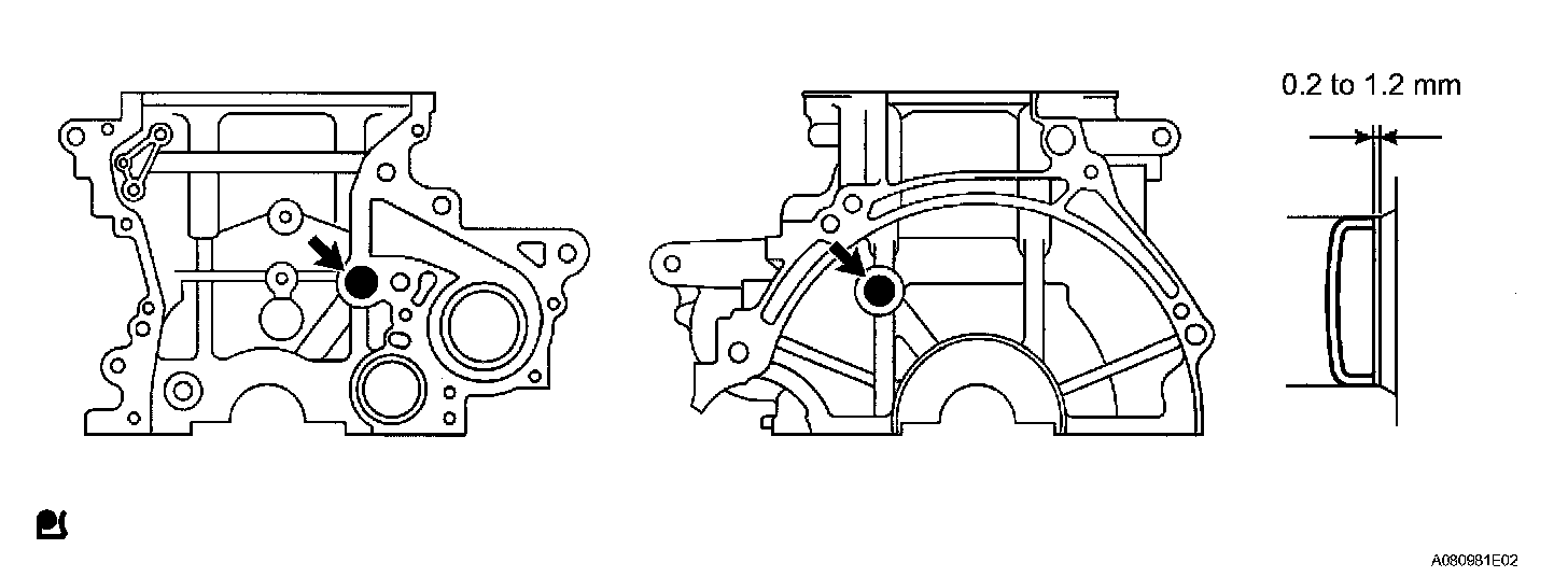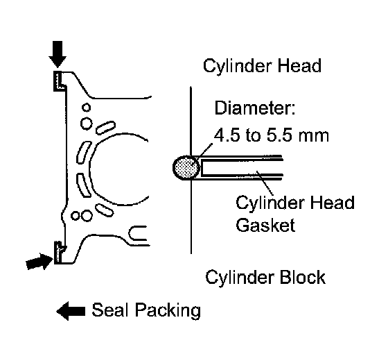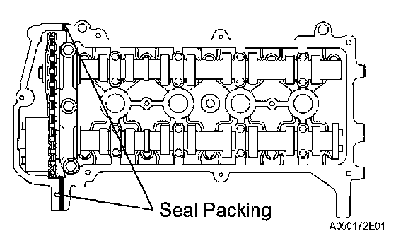b) Apply seal packing to the 2 locations as shown in the illustration.