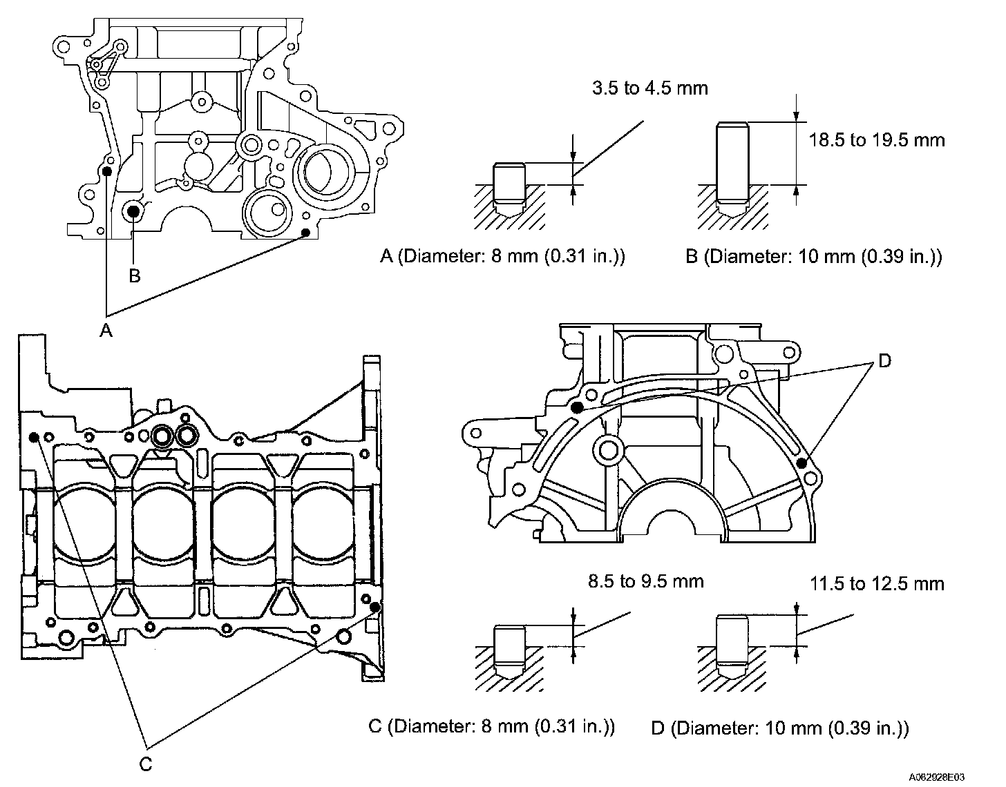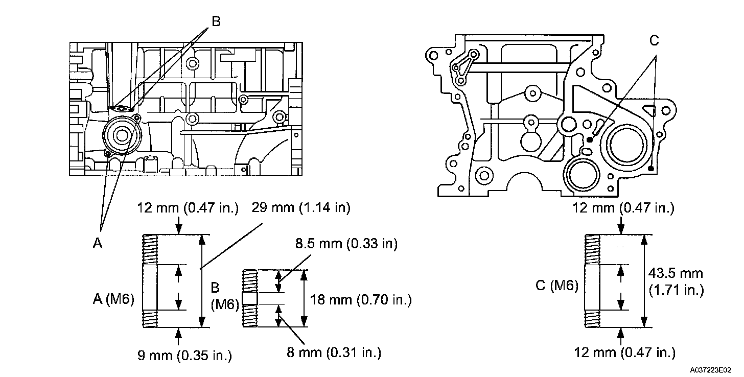 20 to 14 mm (0.79 to 0.55 inch) for bolt E