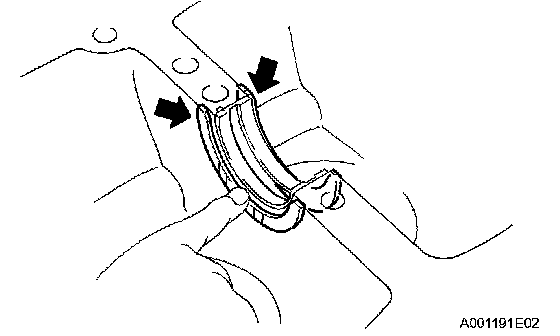 NOTICE: Do not apply engine oil to the contact surface of the cylinder block or the backside of the bearing.