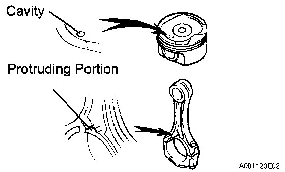 b) Align the cavity of the piston with the protruding portion of the connecting rod.