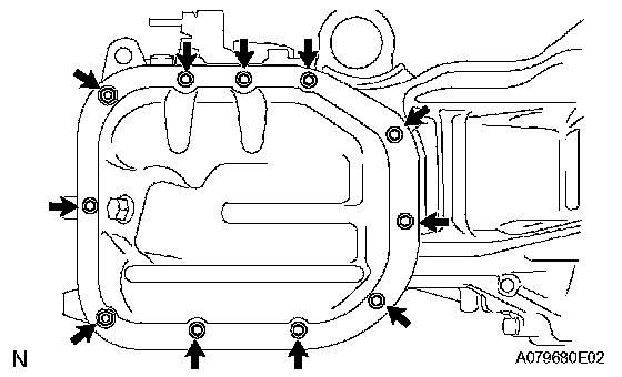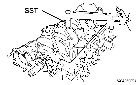 f) Using SST, tighten the bolts in several steps by the specified torque in the sequence shown in the illustration.
