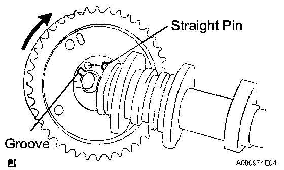 HINT: To prevent the exhaust camshaft from springing back, turn it using a wrench and set it at the mark on the chain.