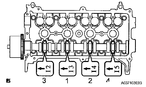 h) Retighten the bearing cap bolts by 90° in the same sequence.