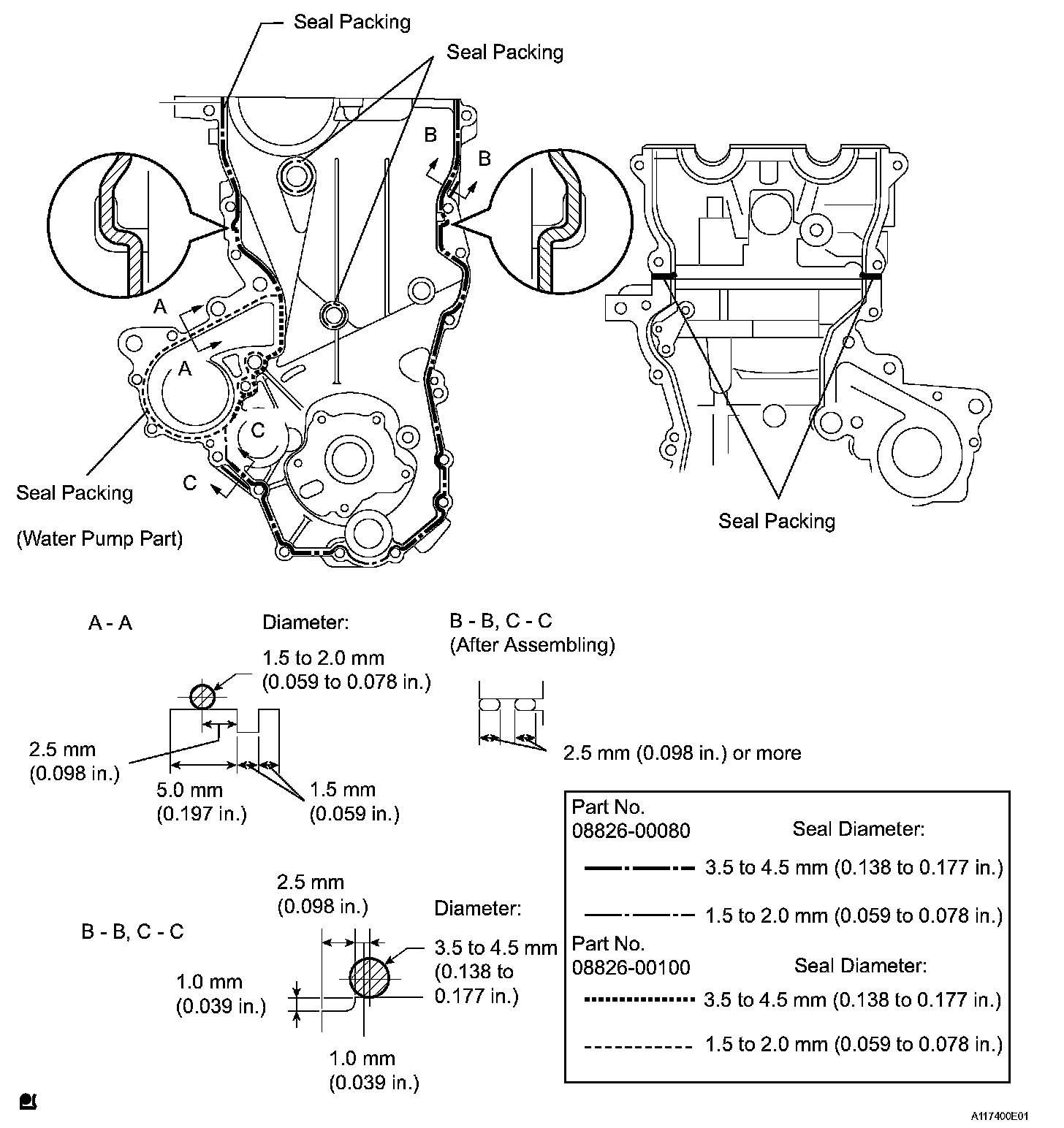 Seal packing: Water pump part: Part No. 08826-00100 or equivalent