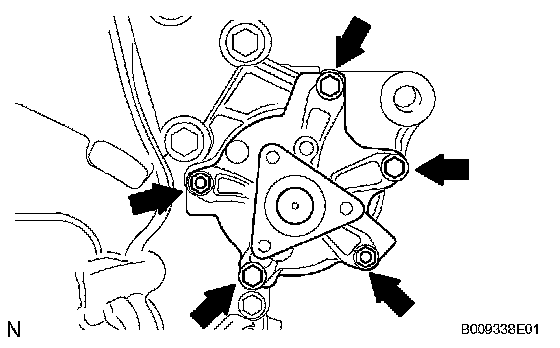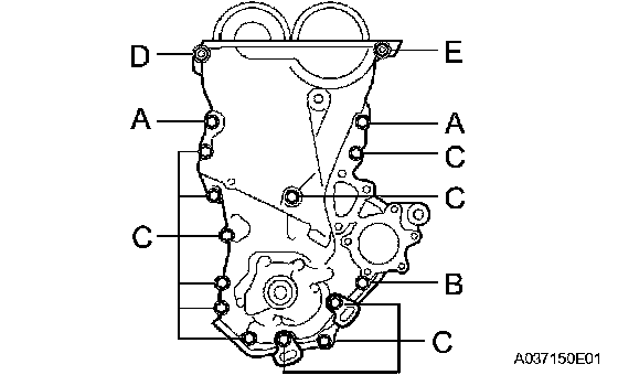 ^ After installing the timing chain case, install the mounting bracket and water pump within 15 minutes.