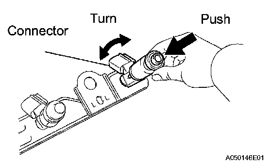 d) While turning the injector clockwise and counterclockwise, install it to the delivery pipe.