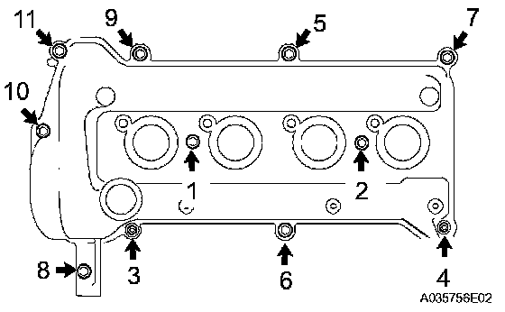 ^ Install the cylinder head cover within 3 minutes of applying seal packing.