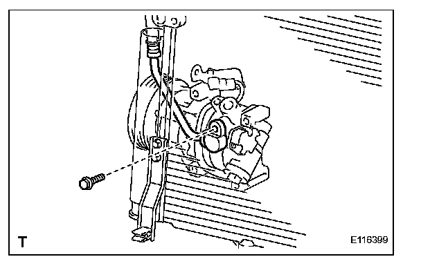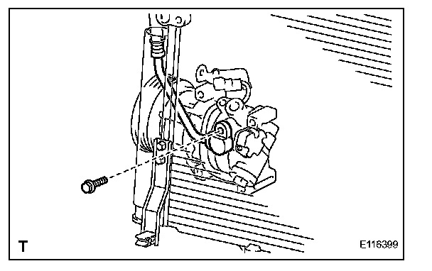 a. Remove the bolt and disconnect the cooler refrigerant discharge hose from the compressor.