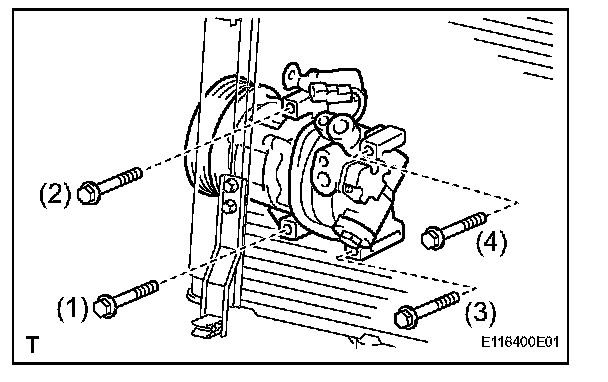 NOTE: Tighten the bolts in the order shown in the illustration to install the compressor.
