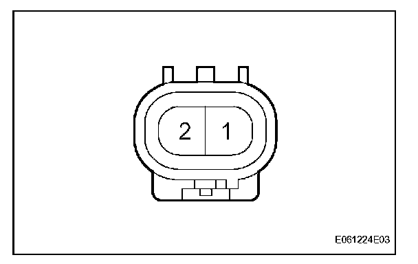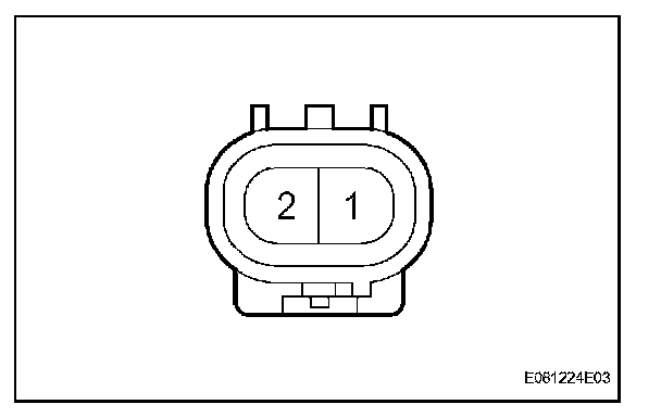 3. When the refrigerant amount and congestion of A/C cycle cannot be checked by the condition of the sight glass and manifold gauge, connect the positive battery cable to terminal 1 of the connector and the negative battery cable to the terminal 2 of the connector. Then check if cold air comes out while setting the blower switch to the "LO" position.