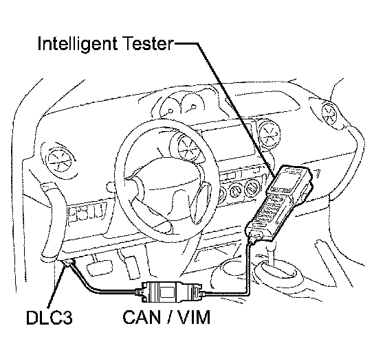 b) Connect the intelligent tester (with CAN VIM) to the DLC3, and then turn the ignition switch ON.